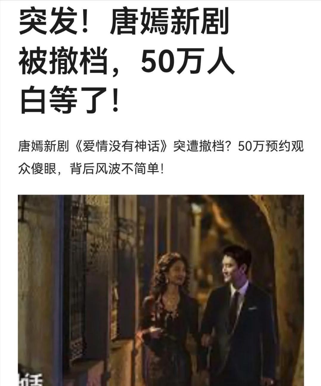 13. 她原定即将上线的作品《爱情没有神话》在开播前四天突然宣布撤档,毫无征兆地消失于排播表中。